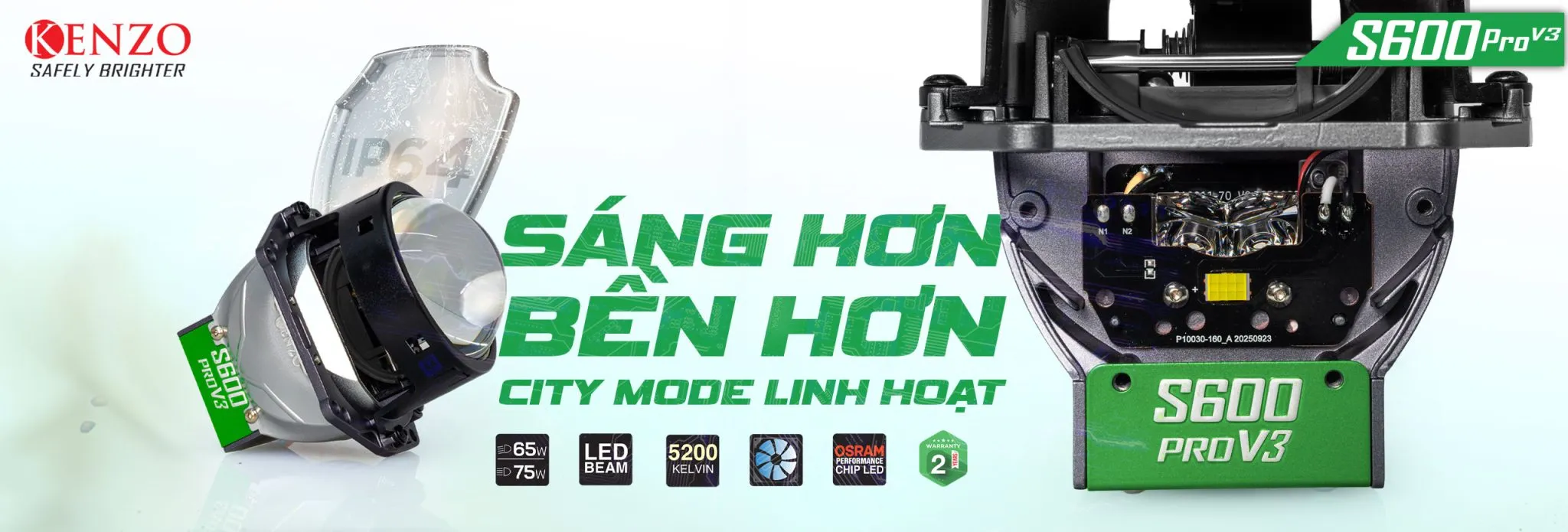 Kenzo Việt Nam tiếp tục khẳng định vị thế tiên phong trong công nghệ chiếu sáng với sự xuất hiện của Bi LED Kenzo S600 Pro V3. Phiên bản mới nhất được nâng cấp toàn diện: chip LED 12 nhân hiệu năng cao, tăng sáng 25%, tối ưu vận hành đô thị với City Mode thông minh, cùng nhiều cải tiến giúp người dùng trải nghiệm ánh sáng mạnh mẽ – bền bỉ – linh hoạt hơn bao giờ hết.