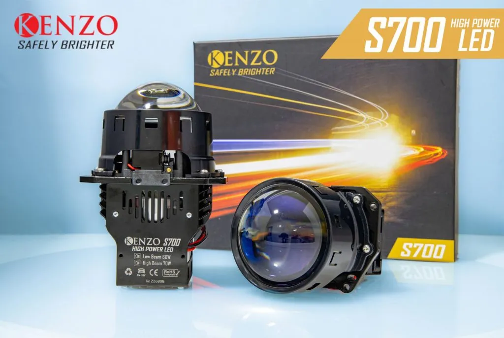 Bi Led hiệu suất cao Kenzo S700 với 10 Chip LED OSRAM tiên tiến từ CHLB Đức mang lại độ sáng Mạnh mẽ và khả năng bám đường hiệu quả nhờ Nhiệt màu 5200K (Trắng ngả Vàng)