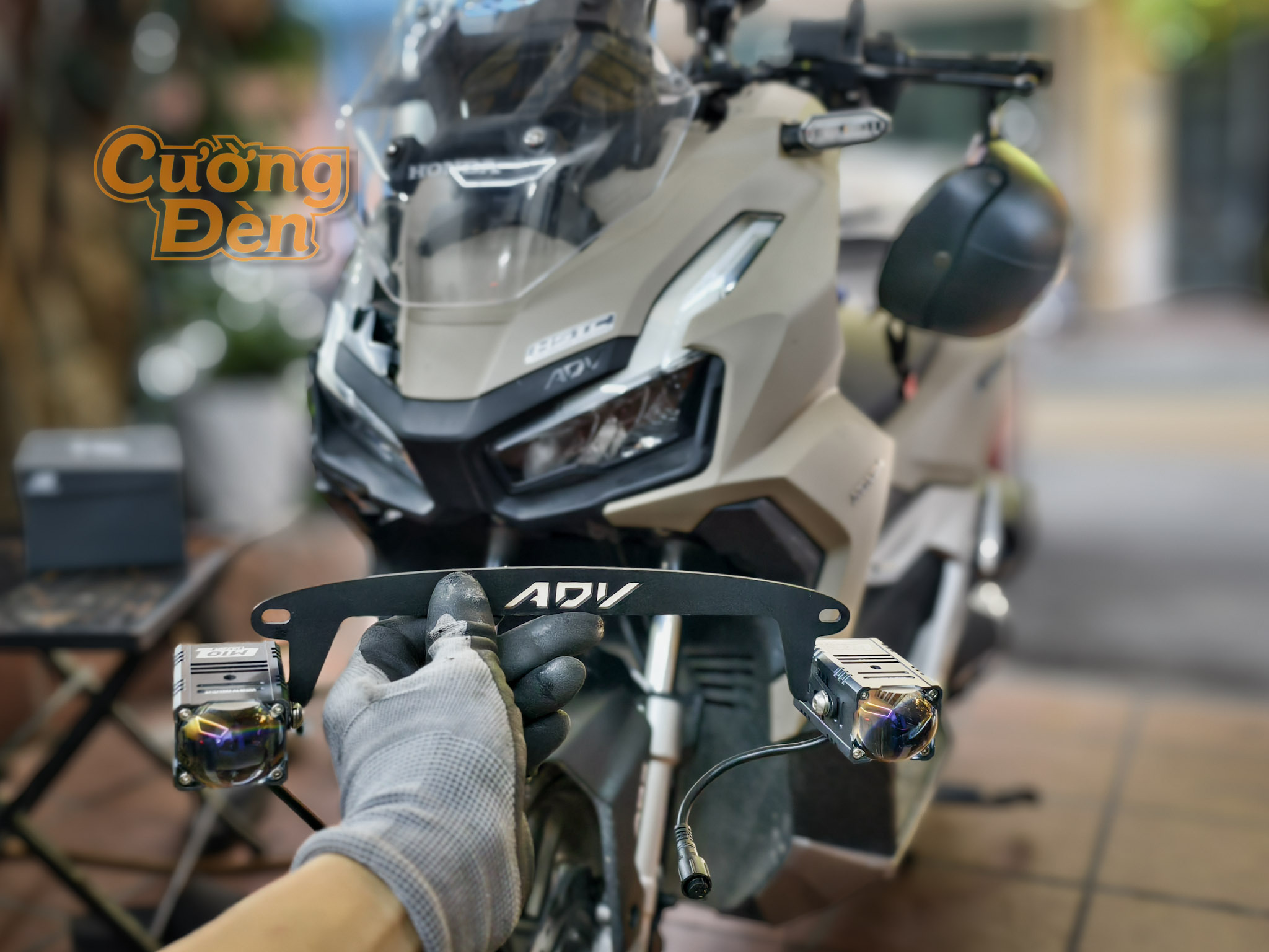 Honda ADV160 là mẫu xe tay ga địa hình với thiết kế hầm hố, nhưng việc tìm kiếm một vị trí lắp đèn trợ sáng vừa hiệu quả vừa không phá vỡ thiết kế xe là một thử thách. Cường Đèn tự hào mang đến giải pháp độc quyền: Lắp đặt đèn Titan M10 Plus tại vị trí dưới gầm đèn pha chính.