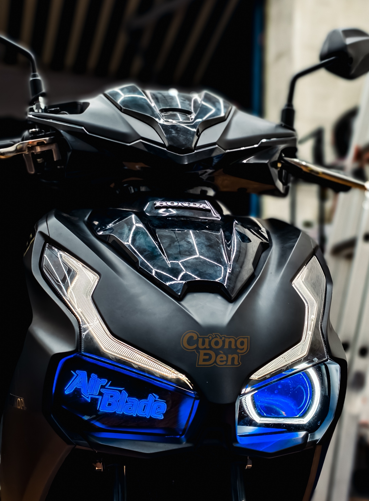 Logo Air Blade Phát Sáng: Điểm nhấn đặc biệt của gói độ là logo Air Blade được chiếu sáng ngay trên chóa đèn hoặc mặt bi cầu. Điều này không chỉ tạo ra sự nhận diện thương hiệu mạnh mẽ mà còn thể hiện cá tính riêng, khác biệt của chủ xe.