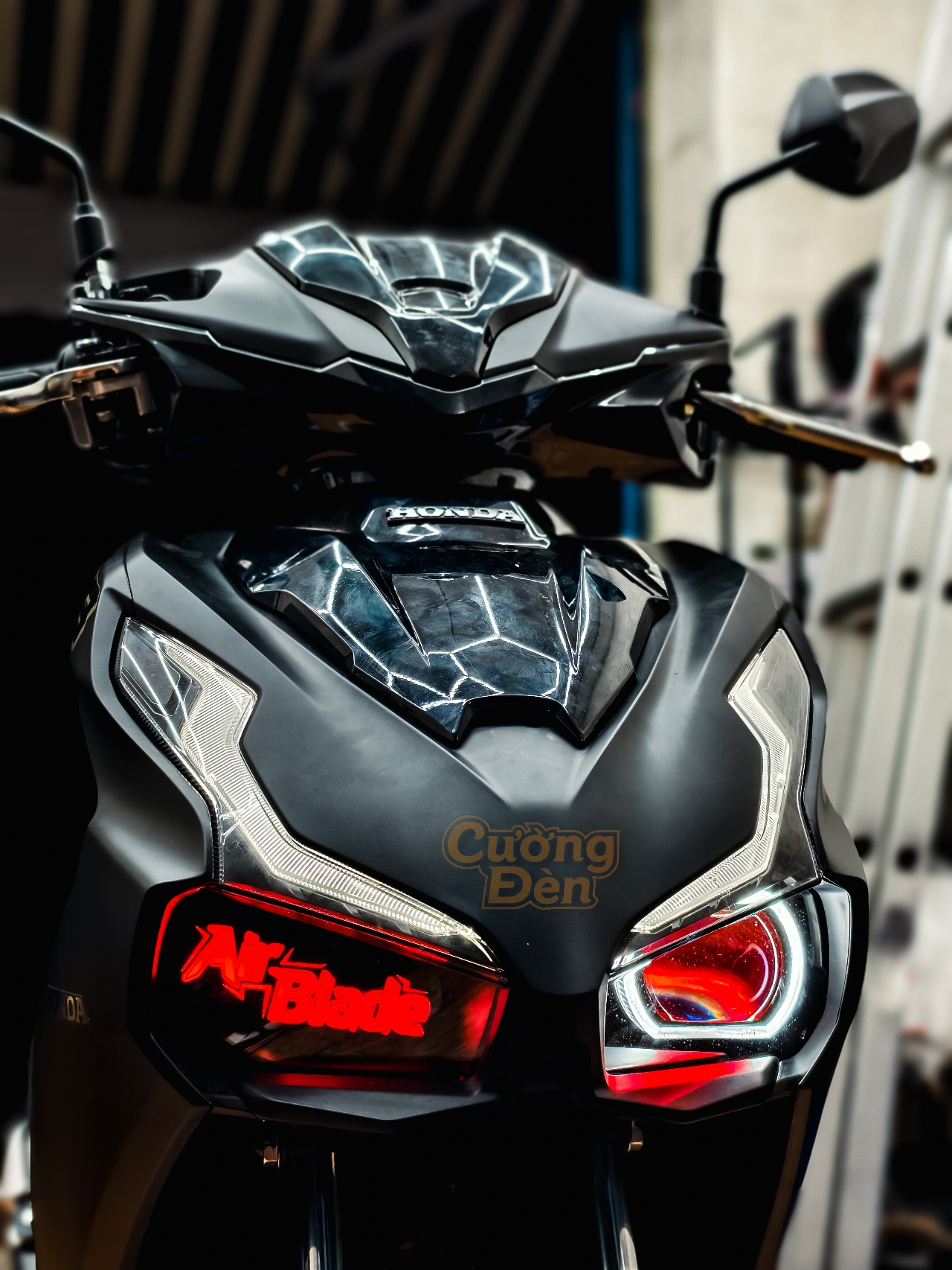 Honda Air Blade Lột Xác Ánh Sáng: Độ Bi Cầu CB150 Pro, Logo AB Cá Tính & Mắt Quỷ APP Đổi Màu