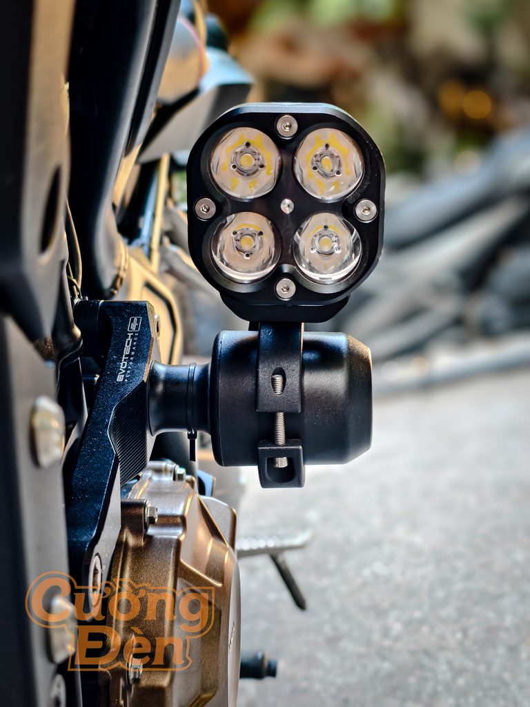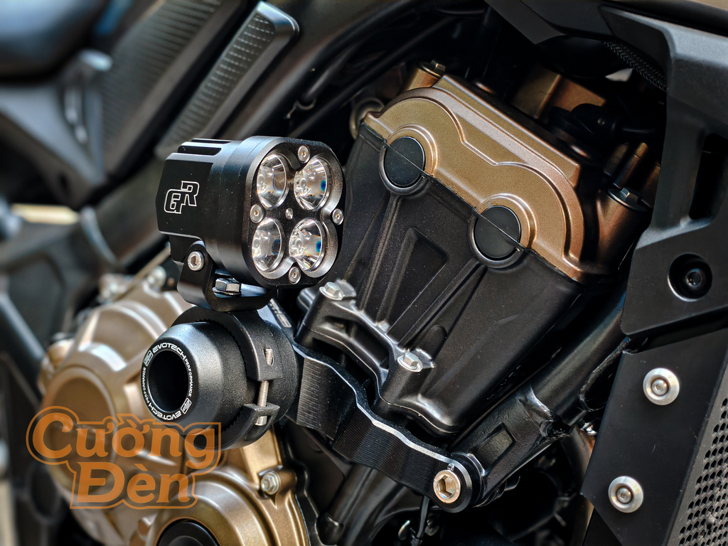 Pad Đèn Thiết Kế Riêng: Đèn được cố định bằng Pad đèn thiết kế riêng cho CB650R, đảm bảo vị trí lắp đặt hoàn hảo, không rung lắc và tối ưu góc chiếu.