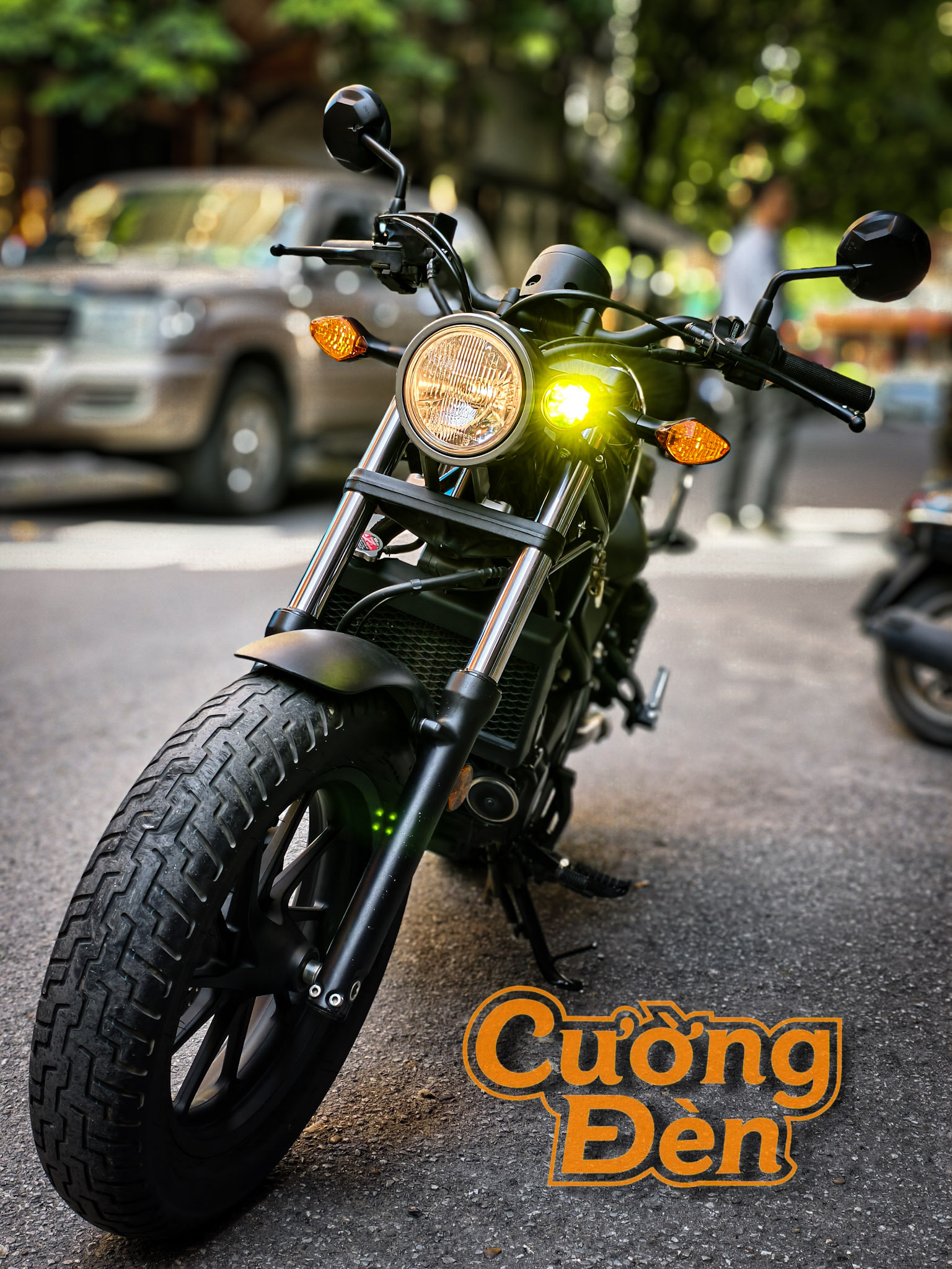 Kỹ Thuật Lắp Đặt: Tại Cường Đèn, hệ thống điện được xử lý chuyên nghiệp (sử dụng Relay, cầu chì), đảm bảo đèn 60W hoạt động ổn định và an toàn tuyệt đối cho hệ thống điện zin của Rebel 300.