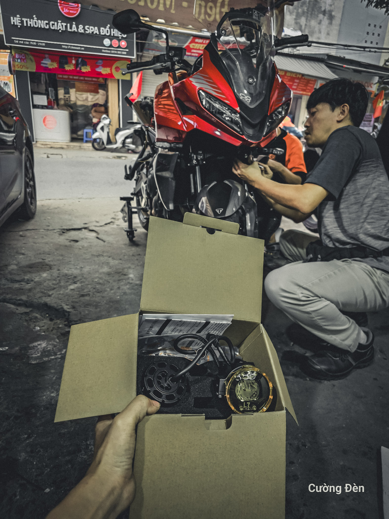 • Lắp Đặt Uy Tín: Toàn bộ quá trình lắp đặt được thực hiện bởi đội ngũ kỹ thuật viên tay nghề cao tại Cường Đèn, am hiểu về dòng xe phân khối lớn Triumph.